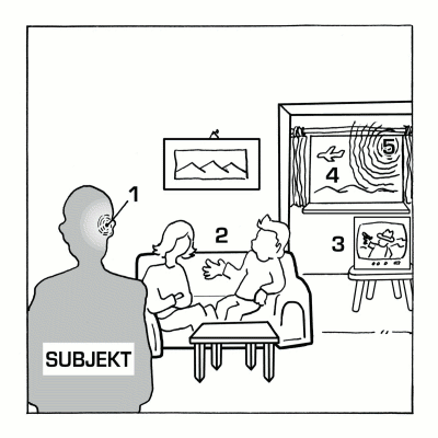 ![]() Ebensogut, wie das abgebildete „Subjekt“ räumlich sehen kann, daß sich das miteinander sprechende Paar auf dem Sofa (2) räumlich vor dem Fernsehapparat (3) befindet und dieser wiederum sich räumlich vor dem Flugzeug (4), welches durch das Fenster zu sehen ist, ist es dazu in der Lage, dies zu hören: Das Gespräch des Paars ist näher an ihm zu hören als der Ton aus dem Fernseher, dieser wiederum ist akkustisch näher an dem Subjekt zu lokaliseren als das Rauschen des Flugzeugs. Als Tinnitus-Betroffener seit meiner Kindheit bin ich dazu in der Lage, klar zu definieren, daß mein Tinnitus-Fiepen (1) räumlich vor all diesen akkustischen Wahrnehmungen rangiert. Subjektiv habe ich den Eindruck, der Piepston, den ich höre, befindet sich direkt in meinem Ohr (also: allen anderen akkustischen Wahrnehmungen vorgestellt). Als Brummton-Betroffener seit nun mehr als drei Jahren, bin ich dazu in der Lage, klar zu definieren, daß der Brummton (5), den ich höre, räumlich jenseits der meisten, hier abgebildeten Geräuschquellen befindet. Also hinter den sprechenden Leuten, hinter dem Fernseher. Die meisten anderen Betroffenen werden meiner Definition sofort zustimmen wenn ich sage, ich habe den Eindruck, der Ton kommt von „irgendwo weit weg“. Subjektiv kann ich lediglich nicht mehr unterscheiden, ob sich die vermeintliche Quelle für diesen Ton noch vor dem Flugzeug oder dahinter befindet, denn hier gehen die Entfernung zu weit auseinander – so, wie man bei sehr großen Distanzen irgendwann auch nicht mehr exakt zu unterscheiden vermag, welches der Dinge, die man in unterschiedlichen Richtungen sieht, sich „näher“ an einem dran befindet. 2) Ein Tinnitus ändert sich nicht dauernd Ein Patient, der ein Tinnitus-Geräusch hat, leidet in der Regel an einem gleichbleibenden Geräusch. Dies erklärt sich damit, daß ein Tinnitus für gewöhnlich durch die organische Beeinträchtigung des Hörapparates entsteht. Bestimmte Teile des Hörspektrums fallen durch organische Schäden aus; neuesten Erkenntnissen zufolge entsteht ein Tinnitus zumeist dadurch, daß das Gehirn (vereinfacht ausgedrückt) für den ihm nun fehlenden Bereich der akkustischen Wahrnehmung „den Lautstärke-Regler gewaltig hochdreht“ (So nach dem Motto: „Nanu, auf den Frequenzen kamen doch bisher immer irgendwelche Töne bei mir an? Warum höre ich da nix mehr??“ – Regler hochdreh’ bis irgendetwas pfeift – „Ah, da ist ja wieder etwas! – Gehirn, Ende!“). Für die Brummton-Betroffenen ändert sich ihre Brummton-Wahrmung – nun, ich möchte nicht sagen: beinahe jede Nacht – aber so kann es bisweilen sein. Und zwar in der Intensität (um nicht zu sagen der Lautstärke) ihrer Wahrnehmung als auch in der Frequenz des Ein- und Aussetzens des Brummtons. Die Intensität des Brummtons läßt sich mit einem Tinnitus-Patienten vergleichen, die ihren Tinnitus mal stärker, mal weniger stark zu hören glauben. Beim Tinnitus sind dies in der Regel allerdings subjektive Schwankungen – je nachdem, ob der Patient aufrund von Stress und anderen Faktoren durch das Pfeifen im Ohr mal mehr, mal weniger genervt ist, und dadurch das ihn belästigende Geräusch gerade „besser abkann“ oder nicht. In Zusammenarbeit mit einem mich betreuenden Psychotherapeuten habe ich allerdings herausgearbeitet (und kann dies durch das von mir geführte Brummton-Tagebuch auch belegen), daß es keinen Zusammenhang zwischen meinen Brummton-Wahrnehmungen und meinen jeweils akuten seelischen Befindlichkeiten gibt. Als Brummton-Betroffener kann ich den schönsten, gesundesten, erholsamsten Tag mit viel Freizeit, Bewegung, Sonne, gesundem Essen usw. hinter mit haben, und die Nacht wachliegen, weil es brummt, daß sich die Balken biegen. Oder nach einem hektischen, stressigen, problemüberfrachteten Tag schlafen wie ein Murmeltier, weil „das Firmament schweigt“. Und umgekehrt. Es gibt keine Gesetzmässigkeiten. Der Brummton kommt und geht, wie er will (und nicht, wie ich – bewusst oder unbewusst – will). Es ist möglich, daß der Brummton wie ein Tinnitus als „gleichbleibendes Geräusch“ wahrgenommen wird. Sehr häufig berichten Brummton-Betroffene aber darüber, daß der Ton „Ein- und wieder Aussetzt“. Brrrrrrr-Brrrrrrr-Brrrrrrr. Abgesehen davon, daß er sich auch hierin bereits eklatant von dem für gewöhnlich gleichbleibenden Fiepen oder Klingeln eines Tinnitus unterscheidet, ändert sich die Frequenz dieses Ein- und Aussetzens auch häufig. Der Vergleich mit einem „Laster, der um die Ecke im Leerlauf dröhnt“, wird viel zu häufig spontan von Neu-Betroffenen herangezogen, um ignoriert zu werden. In manchen Nächten erinnert das Ein- und Aussetzen des Brummtons an ein Schiff, dessen Schrauben in stürmischer See langsam durch die Wellen pflügen; in anderen ist der Wechsel so schnell, daß er an eine Waschmaschine erinnert, die irgendwo im Haus den Schleudergang durchläuft – die ganze Nacht lang. Das ist auch der Grund, warum Brummton-Betroffene an ihrem Leiden so erheblich viel schwerer arbeiten müssen, als Tinnitus-Patienten. Betroffene auf beiden Gebieten sind dazu in der Lage, dies zu unterstreichen. Sich an ein permanent gleichbleibendes Geräusch zu gewöhnen – nicht hinzuhören, dieses gleichsam „auszublenden“ – ist vergleichsweise einfach. Sich an einen Brummton zu gewöhnen, der mal da ist, mal nicht, und jede Nacht anders, ist unendlich viel schwieriger. Der Versuch erinnert Betroffene sehr häufig daran, die berühmte psychische Folter mit dem Wassertropfen auszuhalten, der einem in unterschiedlichen Abständen immer weiter auf den Kopf tropft. In der gänigen Phänomenologie von Tinnitus-Patienten sind stets wechselnde Ohrgeräusche in jedem Fall die Ausnahme – bei Brummton-Betroffenen ist das die Regel. 3) Es gibt keinen ortsgebundenen Tinnitus! Viele Brummton-Betroffene berichten darüber, daß es, fernab von ihrem alltäglichen Wirken (und meist in einem anderen Winkel der Welt), O